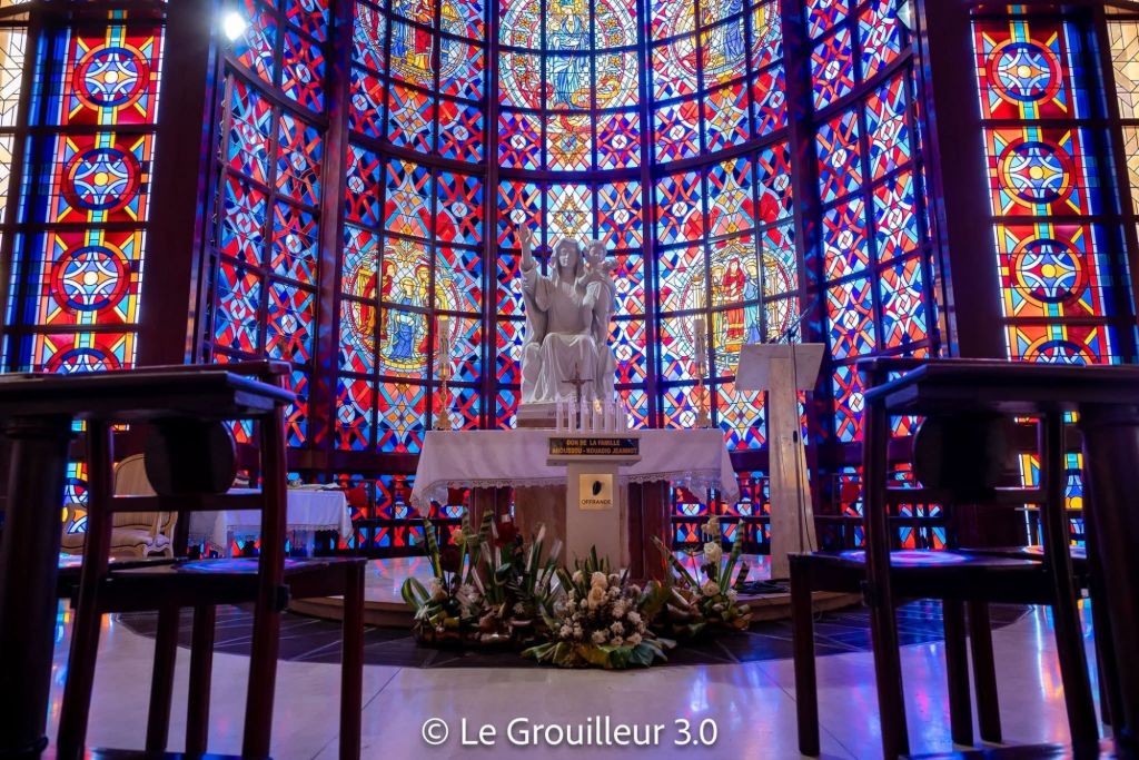* Die Glasmalerei: Die Basilika beherbergt ca. 7.400 m² Glasfenster, die in Frankreich handgefertigt wurden. Es ist die größte Fläche an Glasmalerei weltweit.